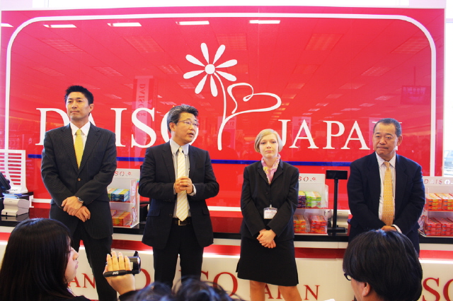 ▲지난 10일 토랜스에 문을 연 일본 생활용품 전문점 ‘다이소’ 그랜드오프닝 행사에서 마사요시 나이토 미주지사장(왼쪽 두번째)이 인사말을 하고 있다. 최계영기자