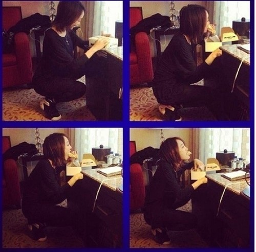 사진 속 니콜은 편한 차림으로 카놀리를 먹고 있는 장난스런 포즈를 취하고 있다.