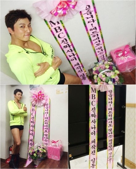 배우 박건형이 ‘진짜사나이’ 팀으로부터 받은 화환을 공개했다.
