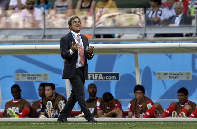 | Costa Rica`s head coach Jorge Luis Pinto shouts instructions to his players during the group D World Cup soccer match between Costa Rica and England at the Mineirao Stadium in Belo Horizonte, Brazil, Tuesday. (AP) |