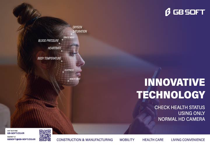 Gbsoft’s contactless biosignal measurement technology is a high-tech technology that uses the properties of blood absorbing light when the heart repeats contraction and relaxation using the RPPG (Remote Photo Thymography) method to detect the amount of reflected light and analyze the shaking of blood vessels in combination.