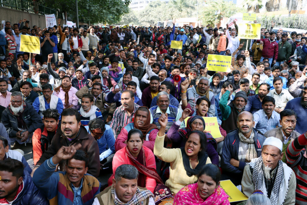 Indian farmers hold a protest in the city of Amritsar, Punjab province, in the northwestern part of the country, demanding irrigation water from the state government on May 29, 2023.
