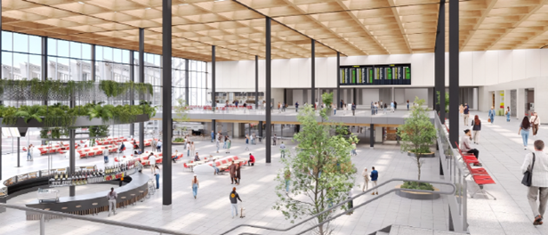 현재 공항은 각 층마다 단일 중앙 통로를 통해 기차, 버스, 택시, 출국장이 서로 연결되어 있어 바쁜 시간대에는 혼잡해 지는 경우가 많이 발생했으며 이번 프로젝트를 통해 연결통로가 다양해지고 분산되어 혼잡을 해소할 것으로 기대된다. 또한 공항 전면에는 자연친화적 공원과 자동차, 자전거 및 트램 통행을 위한 ‘그린 대로’가 조성될 예정이며, 차량 하차 구역은 기존 쉐라톤 호텔 뒤편에 마련되어 승객 흐름을 한층 원활하게 할 계획이다.