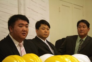 ▲ 하와이 최고급 주상복합콘도인’909 카피올라 니’의 미주 판매분양권을 획득한 블루오션 송 혁 부사장 , 유영민 대표, 데이빗 홍 CEO(사진 오른쪽 부터)가 미주분양에 대해 설명하고 있다. 박상균 기자 / 하와이