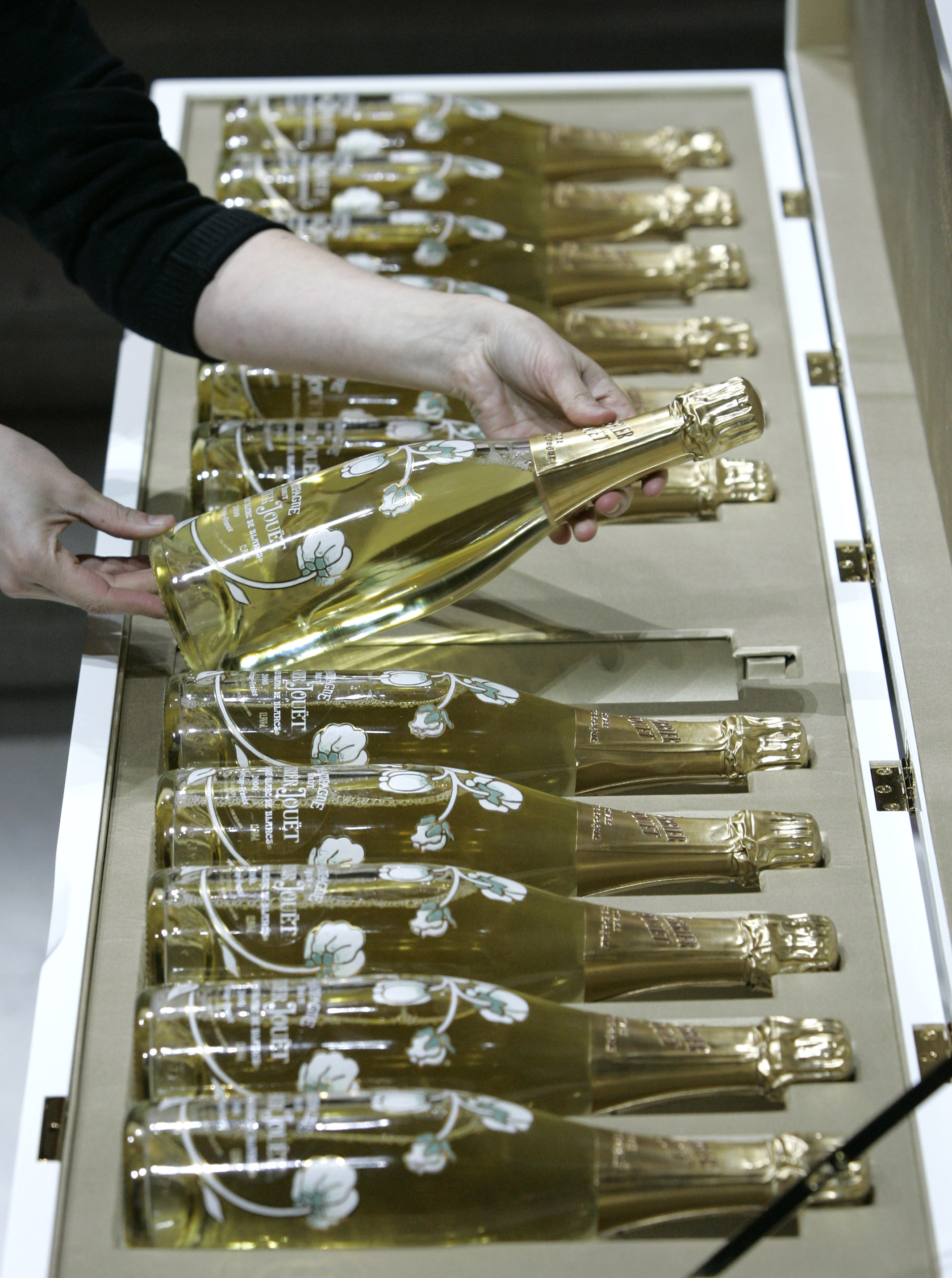 ▲ 최근 프랑스 파리에서 출시된 한정판 고급 샴페인병들. 세계적인 금융위기에도 아랑곳없이 이른바 수퍼부자들은 한병당 6,300달러에 나온 이 럭셔리샴페인을 서로 사려고 경쟁했다고 한다. <사진은 기사의 특정 내용과 관련없음> 파리/AP ⓒ2008 Koreaheraldbiz.com |