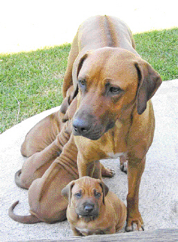 남아프리카의 동부 로디지아에서 보아인이 사자 사냥이나 다른 동물의 수렵에 이용하였던 견종. 7세기경 네델란드계의 이민인이 블러드 하운드나 호텐도트족이 사육하고 있던 토착견을 교배하여 만들었졌다. 등의 역모가 있는 것으로 하여 견종명이 되었다. 유럽에는 1877년경 소개되었으나 견종 표준이 제정된 것은 1922년이었다. 오늘 날까지도 역모가 확실하게 유전되고 있다. 16세기에서 17세기 무렵, 유럽을 떠난 이주민들이 블러드 하운드와 마스티프, 그리고 다양한 테리어를 데리고 남아프리카로 건너왔다. 이렇게 반입된 개들과 그 지역에 살고 있던 반야생의 사냥개인 아프리칸 호텐토트 헌팅독이 교배돼 탄생한 로디지안 리지백은 물 없이 24시간을 견딜 수 있으며 아프리카 오지의 극심한 기온 변화에도 이겨낼 수 있는 뛰어난 체력을 갖춘 탁월한 사냥개다. 무리를 지어 다니며 표범, 물소, 영양 따위를 사냥하는데 특히 사자 사냥에 능숙하여 현재는 ‘로디지안 라이온 독’이라고도 불린다. 수명은 10~14년이며 크기는 수컷 63~68cm, 34kg 암컷 61~66cm, 29kg이다. 성질은 깨끗하고 순종하며, 인내력이 매우 강하며 영리하고 우호적이어서 인기있는 가정견이 될 수 있다. 화가 나면 만만치 않은 상대가 되지만 원래 온순한 기질이며 함부로 짖어대지도 않다. 대형으로 등에 역모가 있으며, 단단한 근육을 한 활동적인 견종으로 피모는 엷은 황색의 단모로 광택이 있다. 강하고 활동적인 개로 경계를 할 때는 이마에 주름이 지는 것이 특징이다. 꼬리는 상당히 길고 움직일 때는 위쪽으로 구부러진 상태를 유지한다. 털은 짧고 조밀하며, 외견은 매끄럽고 광택이 있으나 절대로 양모나 비단결 같아서는 안된다. 색은 라이트 휘튼에서 레드 휘튼이 있으며, 역모는 경계가 확실히 나누어져 끝이 가늘면서 대칭적이지 않으면 안된다. 어깨 바로 뒤부터 엉덩이의 융기점 사이까지 나 있으며 같은 고랑이 서로 마주하고 있다. 고랑 끝의 낮은 부분보다 1/3 이상의 아래에 있는 털이 길어서는 안되며 매끈하고 광택있는 털이 짧게 촘촘이 나 있다. 머리는 적당한 길이로서 두개부는 평평하고 귀의 간격은 넓다. 긴장하면 앞이마에 주름이 생긴다. 주둥이는 길고 두툼하고 힘이 있으며 코의 색은 눈의 색과도 조화되어 있다. 튼튼한 이빨이고 견치가 튼튼하지 않으면 안되며 협상교합, 또는 절단교합이다. 눈은 중간 정도의 크기로 간격이 떨어져 있고 둥글다. 영리한 표정을 하고 있으며 눈의 색은 피모의 색과 조화되어 있어야 한다. 귀는 높게 위치하고 중간 정도의 크기로 넓으며, 끝으로 갈수록 둥글다.꼬리는 힘이 있고 끝으로 갈수록 가늘어지며 행동 시에는 위쪽으로 세우고 있으나 말아서는 안된다. 앞발은 곧고 뼈가 굵다. 발의 중간 관절부는 몸통과 밀착하여 있으며 발바닥은 두껍고 탄력적이다. 발가락은 둥글고 꽉 쥐고 있으며 발가락 사이는 털이 조밀하게 있으며, 발을 보호하고 있다.