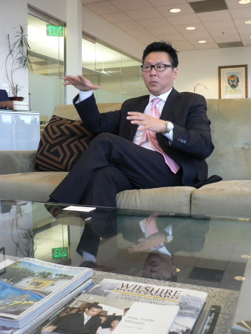 ▲ 한인타운의 장기적인 발전을 위해 영재학교 건립을 위한 비영리단체 결성이 조속히 이뤄져야 한다고 강조하는 아키온 그룹 크리스 박 대표.