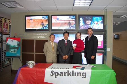 사진 왼쪽부터 한국관광공사 LA지사 신희섭부장과 추첨에 참가한 아시아나항공 윤상철부장, 한국관광공사LA지사 제니퍼 고거 마케팅 담당자, 트래블 에이전트 매거진 크리스 쿤 매니저. 사진제공=한국관광공사 LA지사