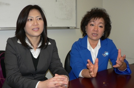 ▲ 한미은행의 주디 이 다운타운지점장(오른쪽)과 샤론 김 패션디스트릭트 지점장이 다운타운 지역의 현황과 앞으로의 활동 계획을 설명하고 있다.