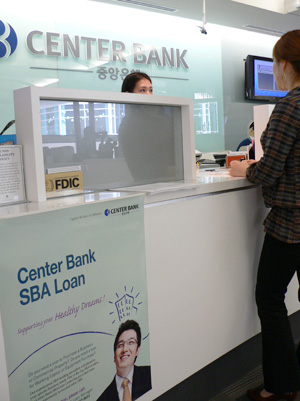▲ LA한인타운내 위치한 중앙은행 본점지점 내 붙은 SBA대출 홍보 포스터. 중앙은행은 최근 간부회의를 통해 SBA대출을 전 략적으로 늘린다는 방침을 세운 것으로 전해졌다.