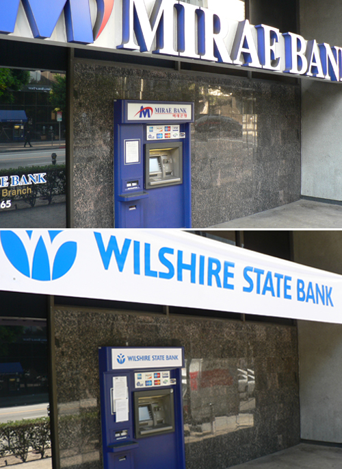 ▲ 지난 26일 FDIC는 미래은행을 폐쇄조치 했고 앞으로 미래은행은 당국의 결정에 따라 윌셔은행이 넘겨받게 됐다. 이로써 윌셔은행은 자산과 예금 모두 3억달러 이상을 확보하는 은행이 됐다. 폐쇄되 기 전 미래은행 윌셔본점의 모습(위쪽 사진)과 폐쇄 조치후 28일 윌셔은행의 배너가 걸린 구 미래은 행 본점의 모습. ⓒ2009 Koreaheraldbiz.com | |