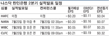 주요 기업들의 실적 발표에 따라 증시가 일희일비하는 가운데 나스닥 상장 4대 한인은행들의 실적 발표 시즌이 시작된다. 오는 23일 나라은행(심볼:NARA)과 중앙은행(CLFC)을 시작으로 28일에는 윌셔은행(WIBC)이 지난 2분기 영업실적 결과를 발표하고 투자자들과 컨퍼런스콜을 가질 예정이다. 한미(HAFC)는 아직까지 일정을 공시하지 않았으나 이달 안에는 발표를 할 것으로 보인다. <표 참조> 4개 한인은행 전체적으로 볼때는 지난 반년간 이어져온 실적 악화 트렌드가 그대로 이어질 공산이 크다. 월가 애널리스트들의 예상치를 보면 윌셔를 제외한 3개 은행이 적자를 기록할 가능성이 높아 보인다. 한미와 나라는 주당 0.20달러, 중앙은 주당 0.21달러의 손실이 예상되며 윌셔만이 0.05달러의 순익을 올릴 것으로 전망되고 있다. 유동성 위기가 한풀 꺾이고 은행들에 대한 일반 소비자들의 신뢰가 조금이나마 되살아나면서 예금 쪽에서는 큰 문제가 없을 것으로 예상된다. 최근 들어 고금리 예금상품을 제공하는 한인은행들이 눈에 띠게 줄어든 점은 이같은 분위기를 잘 보여준다. 특히 나라는 감원과 구조조정을 단행하며 여건이 좋지만은 않다는 것을 내비췄고, 중앙은 감독국 감사를 마쳤기에 두 은행 모두 지난해 4분기와 지난 1분기에서처럼 월가예상치를 밑도는 실적을 발표할 가능성도 적지 않아 보인다. 자산건전성은 은행들의 실적 개선을 방해하는 가장 큰 걸림돌로 여전히 남아있다. 불경기가 계속되며 연체 및 부실대출이 당분간 계속해서 늘 것이 확실시되고 이는 대손충당금 증가로 이어지므로 은행들의 수익에 직접적인 타격이 오지 않을 수 없는 경제 여건이기 때문이다. 몇몇 기업들에서 좋은 실적을 내놓고는 있지만 이는 기업 순익 차원의 일이지 중소은행을 이용하는 대출자의 재정상태 개선을 기대할 정도로 실물경제가 나아진 것이 아닌게 현실이다. 그렇기에 이들 은행이 어느정도의 자본비율을 유지하느냐도 눈여겨 볼 대목이다. FDIC로부터 미래은행을 사들인 윌셔가 자산규모로 나라를 제치고 2대 한인은행으로 올라서는지 여부도 관심사이다. 지난 3월말 기준 나라가 28.3억달러, 윌셔가 26.1억달러의 자산고를 보유했으며 윌셔가 미래를 매입하며 가져 간 대출이 3억4200만달러 상당이니 윌셔가 나라보다 큰 규모를 갖게 됐을 것이라는 추산도 가능하다. 자산규모 보다는 은행의 건강 상태가 더욱 중요한 것임에는 틀림이 없지만 지금의 경쟁구도에서 자산규모로 따지는 순위가 갖는 상징성도 무시할 수 없다. 염승은 기자 |