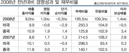 지난해 미국으로 직접 투자한 한국기업들의 현지 법인 경영 실적이 악화된 것으로 조사됐다. 한국수출입은행은 28일 한국 기업들 중 해외직접투자 현지법인 3295개사의 2008년 경영실적을 다양한 각도에서 분석해 발간한 ’2008 회계연도 해외직접투자 경영분석’자료에서 이같이 밝혔다. 수출입은행에 따르면 전 세계적인 경기침체 및 소비심리 위축으로 해외 현지법인의 2008년 당기순이익률이 -0.3%를 기록하여 전년의 1.3% 대비 악화되었다. <아래 표 참조> 특히 427개의 미국 진출 현지법인의 경우 제조업 및 도소매업 분야를 포함해 전반적으로 경영실적이 저조했다. 반면 한국의 최대 해외투자국인 중국에 진출한 현지법인은 2008년 내수시장 호조 및 하반기의 경기부양책에 힘입어 당기순이익률이 1.4%를 기록하는 등 전체 평균(-0.3%) 대비해 양호했다. 이경준 기자 |