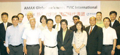▲ AMAX와 AVIC 주요 관계자들이 기본협약서 체결 후 단체로 기념사진을 촬영하고 있다. (앞줄 왼쪽에서 3번째가 AVIC의 브라이언 타오 부사장 그 리고 그 오른쪽이 AMAX의 성낙영 대표)