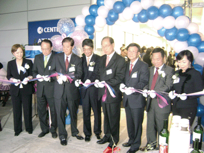 ▲중앙은행의 산타클라라지점 오프닝 행사에서 유재환 행장(오른쪽에서 네 번째)를 비롯한 관계자들이 테이프 커팅을 하고 있다.
