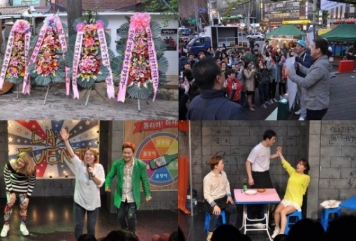 특히 5일 첫 공연 전에 개그맨 김준호가 대학로 길거리에서 ‘대박포차’의 게릴라 홍보를 자처하며 공연 홍보에 나섰고, 이날 게스트로 개그우먼 이희경이 출연해 관객들에게 한층 재미를 더해주어 큰 웃음을 선사했다.