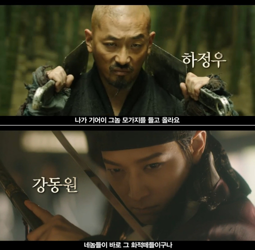공개된 예고편 영상에서는 스토리 소개와 함께 민머리로 파격 변신한 하정우와 화려한 장검 액션을 펼치는 강동원의 모습이 담겨있어 영화 팬들의 기대를 모으고 있다.