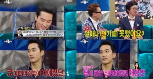 MBC ‘라디오스타’가 배우 송승헌의 출연에 힘입어 시청률 상승과 함께 수요일 예능프로그램 중 1위를 차지했다.