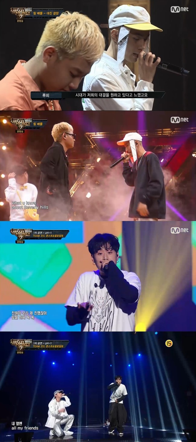 [헤럴드경제=서병기 선임기자]Mnet ‘쇼미더머니 트리플세븐(Show Me The Money777)’ 본선 1차 경연이 시작됐다. 그 첫 라운드에서는 pH-1이 디아크를 꺾고 승리를 차지했다.