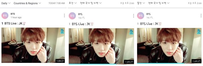 정국의 브이 라이브는 방송 당일 집계국 모든 나라에서 1위를 기록하며 일간 1위를 차지하였고, 미국과 캐나다 등 북미지역, 브라질 등의 남미지역에서는 당일날 월간 1위를 차지하는 등 정국의 미주 대륙에서의 인기를 입증하였다.
