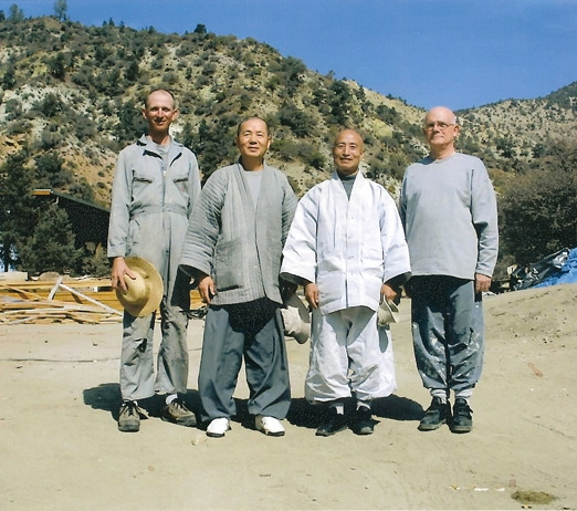 태고사 공사가 한창이던 당시 언제나 작업복 차림이었던 ‘무량스님’(사진 왼쪽).