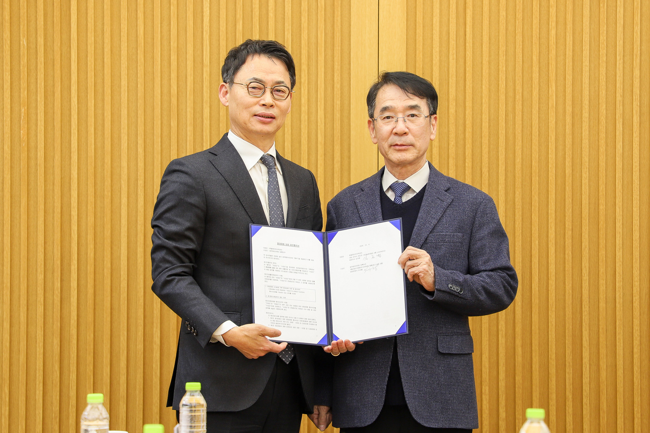 | (왼쪽부터) 이규철 법무법인 대륙아주 대표변호사와 김규명 LH사옥관리 대표이사[대륙아주 제공] |