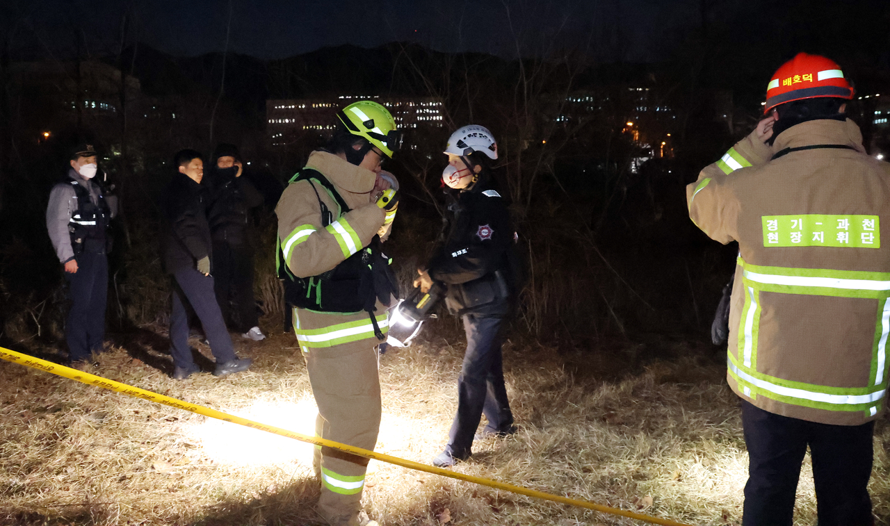| 윤석열 대통령에 대한 체포영장이 집행된 15일 고위공직자범죄수사처(공수처)가 있는 경기 과천시 정부과천청사 부근에서 남성 1명이 분신해 숨지는 사고가 발생해 경찰과 소방이 현장을 조사하고 있다. 2025.1.15 [공동취재] |