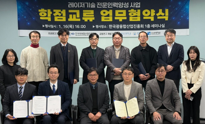 | 한국광융합산업진흥회는 최근 조선대·부산대·인하대 대학원과 레이저기술 분야 전문인력양성을 위한 학점교류 업무협약을 맺었다 |