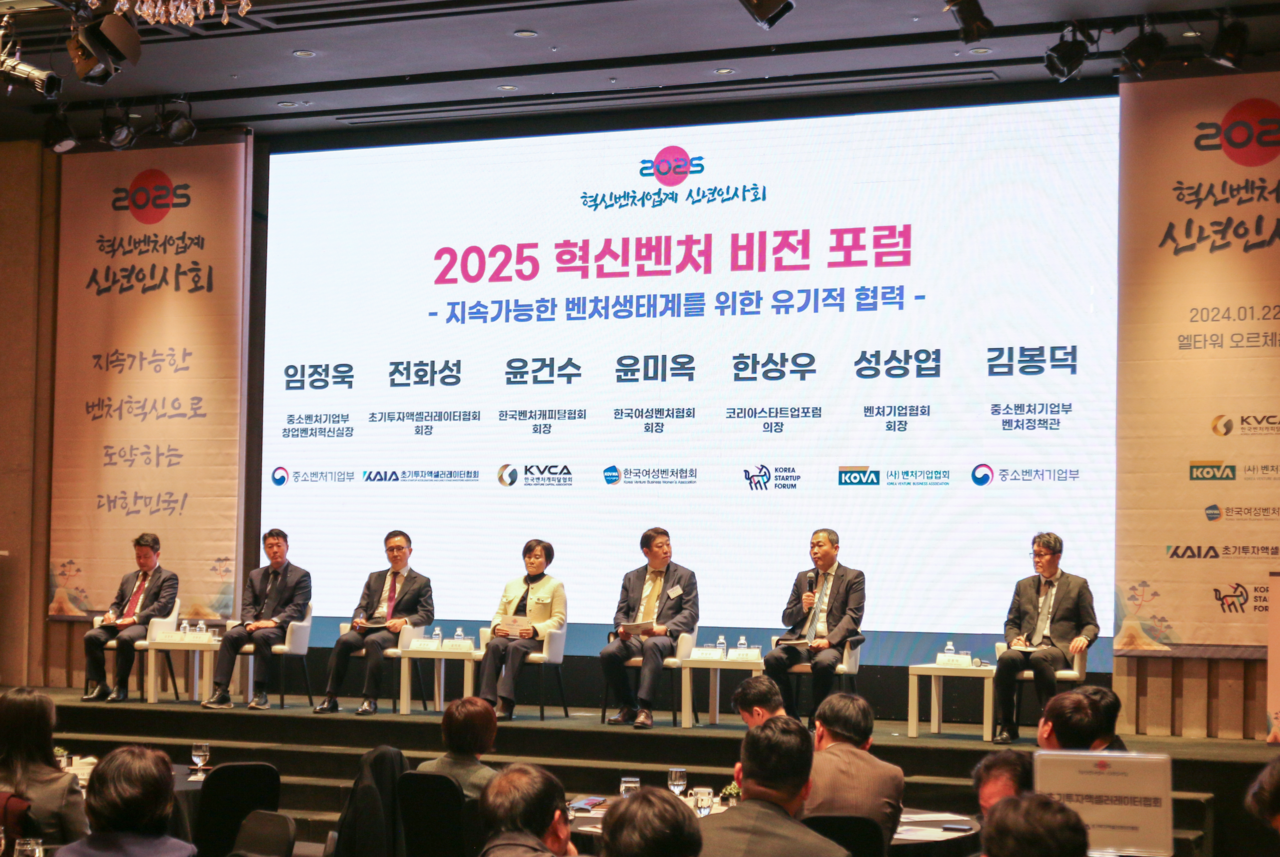 한국벤처캐피탈협회(이하 VC협회·회장 윤건수), 벤처기업협회(회장 성상엽), 한국여성벤처협회(회장 윤미옥), 초기투자액셀러레이터협회(회장 전화성), 코리아스타트업포럼(의장 한상우)은 22일 서울 양재동 엘타워에서 ‘2025년 혁신벤처업계 신년인사회’를 개최했다.