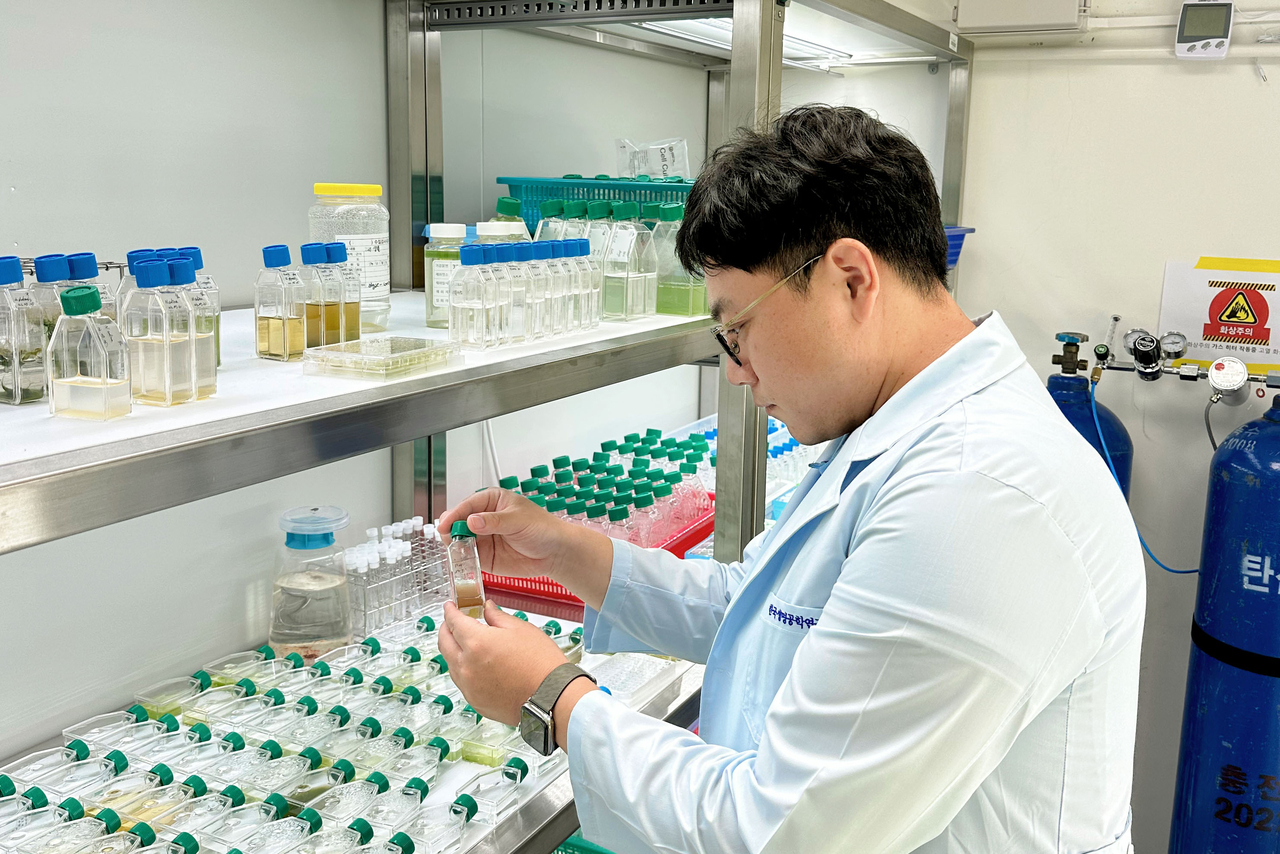 | 이준 박사가 유해 미세조류의 독성을 저감하는 연구를 수행하고 있다.[한국생명공학연구원 제공] |