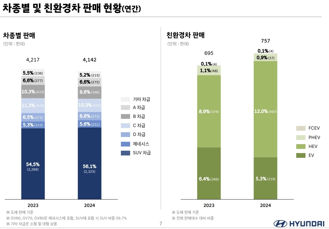 | 현대차 연간 차종별 및 친환경차 판매 현황 이미지 [현대차 제공] |