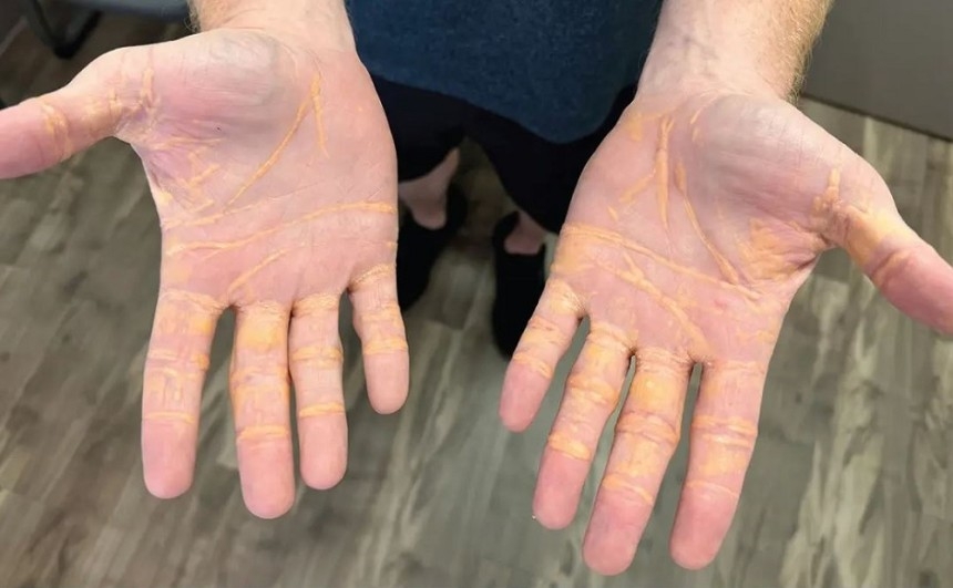 얼마 지나지 않아 남성의 손바닥과 발바닥, 팔꿈치에는 노란색 선과 결절이 생기기 시작했다. 3주가 지나도 증상이 지속되자 그는 병원을 방문했다. 검사 후 의료진은 ‘황색종’이라는 진단을 내렸다.