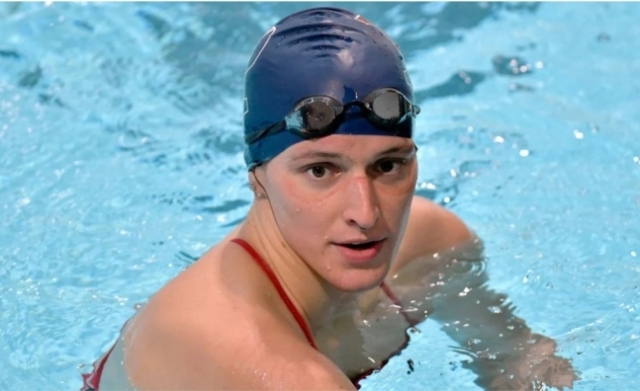 | 펜실베이니아 대학교 트랜스젠더 수영선수 리아 토마스가 지난 2022년 1월 22일 하버드와의 NCAA 대학 수영대회에서 500미터 자유형에서 우승한 후의 모습. [AP] |
