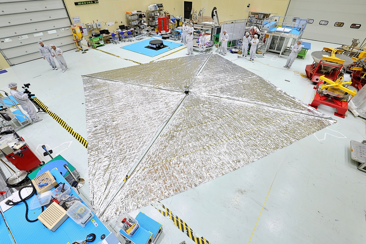 | 태양 돛을 완전히 전개한 모습.[한국항공우주연구원 제공] |