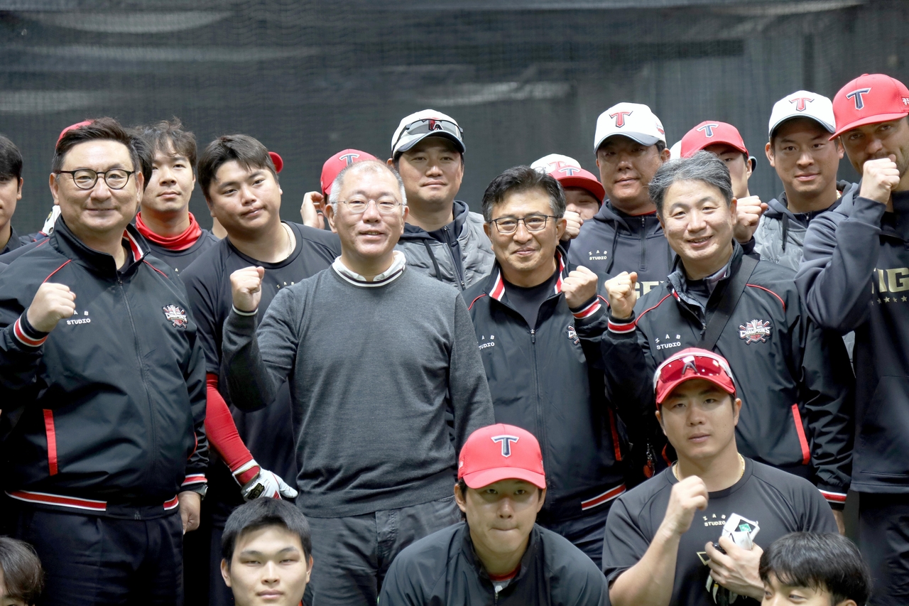 정 회장은 16일(현지시간) 미국 캘리포니아 어바인 인근에 위치한 더 클럽하우스 베이스볼을 찾아 훈련 중인 KIA 타이거즈 선수들과 코칭 스태프를 격려했다.