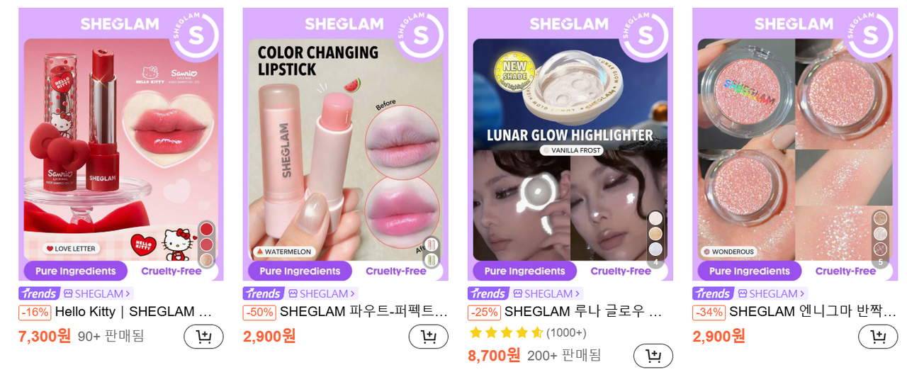 C커머스는 앞으로도 저가 제품을 앞세워 국내 소비자를 공략할 것으로 전망된다. 뷰티 부문에 발을 들인 쉬인도 마찬가지다. 자체 브랜드인 쉬글램도 저렴한 가격이 특징이다. 대부분 메이크업 제품 가격은 1만원 내외다. 5000원 미만 제품도 많다. 해리포터, 헬로키티 등 협업을 통해 선보인 컬래버 제품도 눈에 띈다. 국내 소비자 사이에서도 디자인과 색상이 다양해 가격 대비 만족도가 높아 호평이다. ‘가성비’를 앞세운 다이소의 대항마로 떠오를 것이란 분석까지 제기된다.