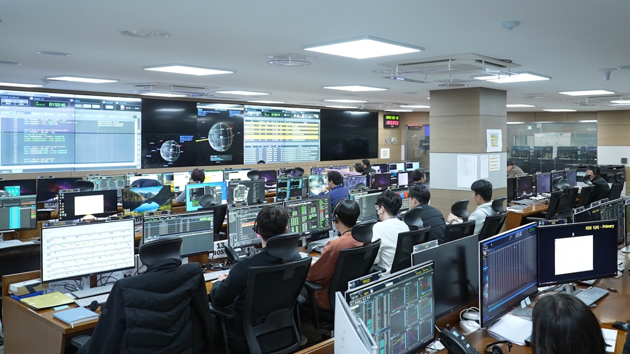 | 대전 한국항공우주연구원 다누리 관제실에서 연구진들이 고도 하강 기동을 수행하고 있다.[한국항공우주연구원 제공] |