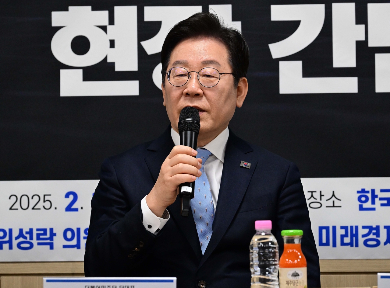 | 이재명 더불어민주당 대표가 19일 서울 마포구 한국방위산업진흥회에서 열린 ‘트럼프 시대 : 한미동맹과 조선산업·K-방산의 비전’ 현장 간담회에서 발언하고 있다. [국회사진기자단] |