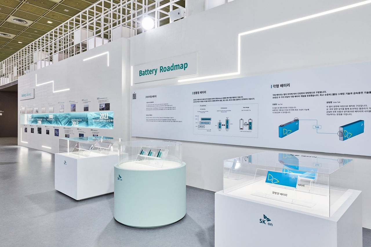 [헤럴드경제=김성우 기자] 5일 오전 서울 강남구 코엑스에서 열린 배터리 산업 전시회 ‘인터배터리 2025’ 행사장 현장 모습. SK온은 이번 전시회에서 3대 폼팩터(파우치형·각형·원통형 배터리)를 모두 전시하고 고전압 미드니켈 배터리를 처음으로 선보이는 등, 폭넓은 배터리 포트폴리오를 바탕으로 시장의 다양한 요구에 부응할 준비가 되어있음을 강조했다.