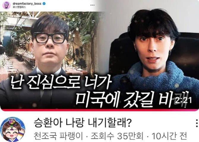 그러자 이틀 뒤 한 유튜버는 “승환아 나랑 내기할래”란 영상을 올려 이승환이 올린 사진이 조작됐으며, 실제 미국을 다녀오지 못했다는 취지의 주장을 폈다. 반정부 인사를 CIA에 신고하면 미국 입국이 거부된다는 낭설에 기반한 억측이었다.