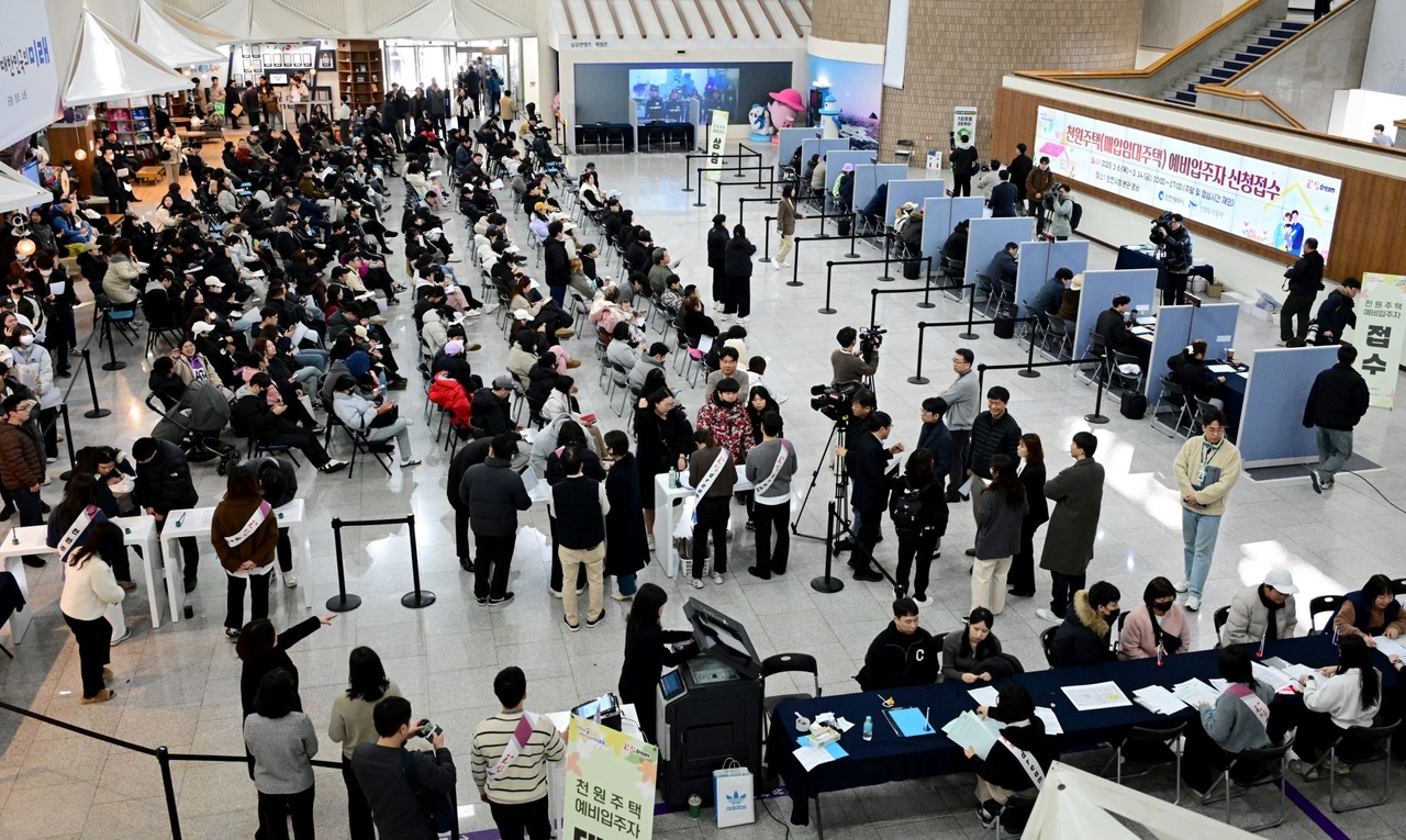이날 접수 신청 개시 20분 만에 300여가구가 한꺼번에 몰리면서 오후 마감 시간까지 600명이 넘는 시민들이 몰리는 등 하루종일 북새통을 이뤘다.