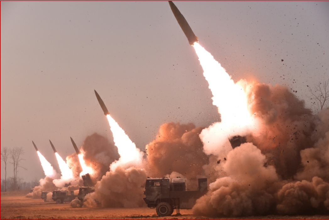 | 합참은 10일 “오늘 오후 1시 50분께 북한 황해도 내륙에서 서해 방향으로 발사된 미상 탄도미사일 수발을 포착했다”고 밝혔다. 북한이 지난 2023년 3월 김정은 국무위원장 현지지도 아래 실시한 화력습격훈련 모습. [노동신문 홈페이지] |