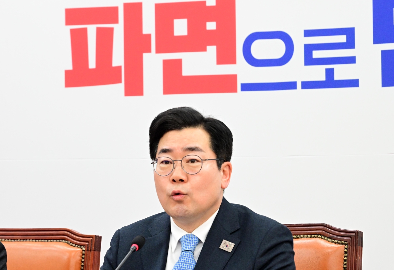 | 박찬대 더불어민주당 원내대표가 11일 오전 서울 여의도 국회에서 열린 원내대책회의에 참석해 모두발언하고 있다. 이상섭 기자 |