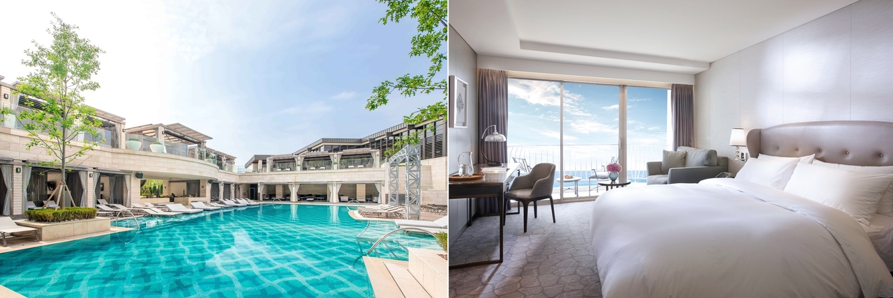 | 파라다이스시티 ’아웃도어 풀’(왼쪽), 파라다이스 호텔 부산 ’디럭스 오션 테라스’ 객실 |