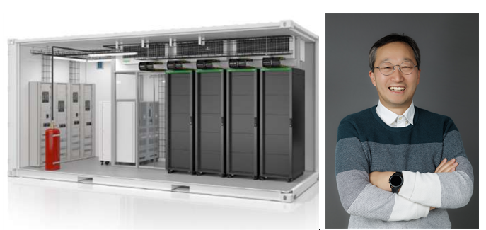 | 모비가 개발한 모듈형 데이터센터 ‘에디슨’과 이규형 대표. [모비 제공] |