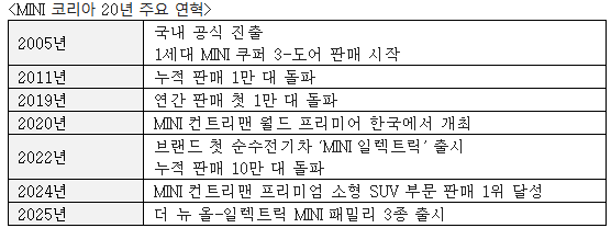 [헤럴드경제=김성우 기자] 지난 2005년 국내 시장에 발을 내딛은 미니(MINI)가 올해로 한국 진출 20주년을 맞았다.