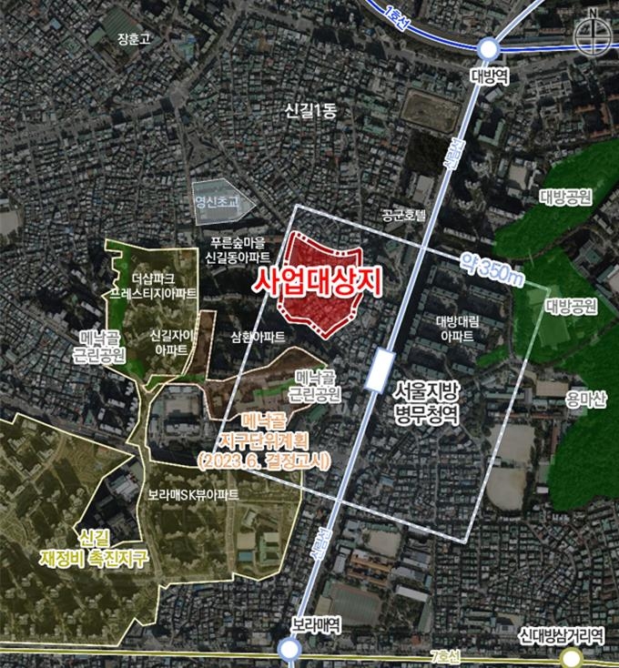 [헤럴드경제=김희량 기자] 서울 지하철 신림선 서울지방병무청역 인근에 1228세대 공동주택이 건립될 예정이다.