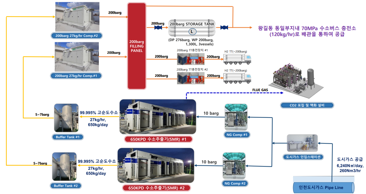 이 사업을 통해 하루 1.3t의 수소를 생산할 수 있는 설비와 13t 규모의 이산화탄소 포집 설비가 구축된다.