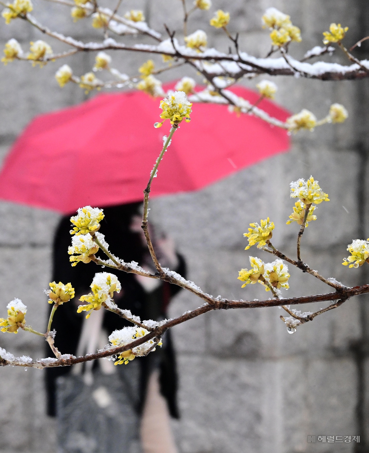 [헤럴드pic] 국회에 핀 산수유 글꼴 선택 본문 텍스트 크게본문 텍스트 작게 인쇄 [헤럴드경제=이상섭 기자] 서울과 경기도 등 수도권에 대설주의보가 내려진 18일 오전 서울 영등포구 여의도 국회에 핀 산수유에 눈이 쌓여 있다.