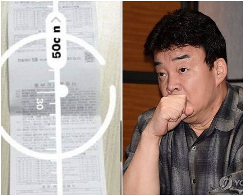 | 논란이 된 빽다방 영수증과 백종원 더본코리아 대표. [엑스·연합뉴스] |
